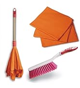 The VIMAL Combo Set pairs a 20-inch plastic broom with star-shaped polypropylene bristles and a high-density orange flannel dust mop featuring a foam-backed handle. Engineered for durability and versatility, this lightweight set is ideal for wet floor cleaning and delicate dusting across home, office, and vehicle surfaces.