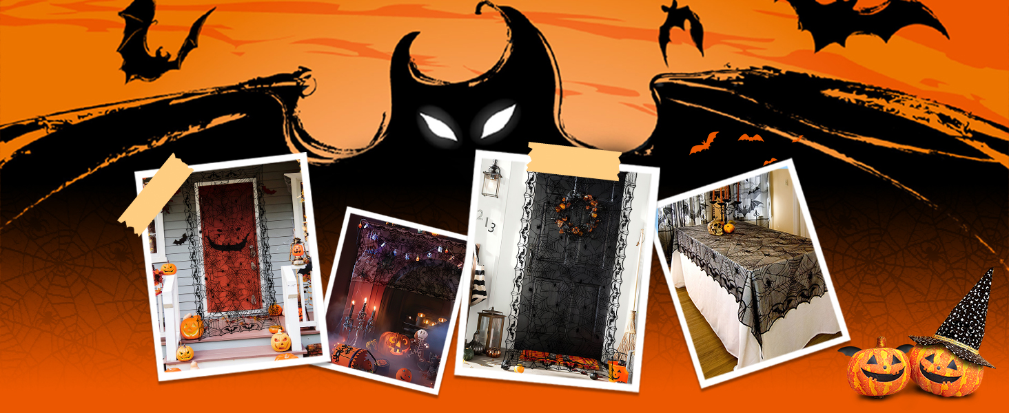 eZAKKAHalloween Table Cloth, Spider Web Table Cloth Black Tablecloth Lace Fabric Table Cloths Halloween Table Cover for Rectangle for Parties Gothic Halloween Spooky Home Decorations, 48x96 Inch