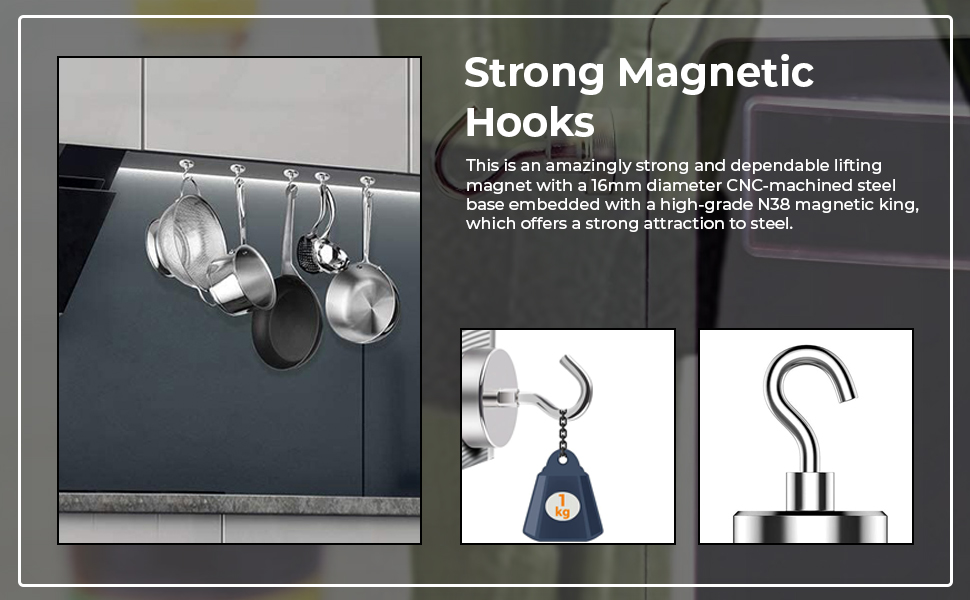 HASTHIP® Neodymium Magnets Powerful Hooks combine industrial-grade N38 magnets with precision CNC steel bases to deliver a heavy-duty 6KG (13LBS) holding capacity. Featuring a rust-resistant, mirror-like finish, these hooks are built for versatile use across home, office, and workshop environments. Each pack includes 10 hooks, all quality-checked under ISO 9001 standards to ensure durability and flawless performance.