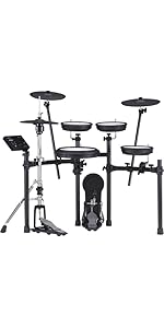The Roland TD-07DMK V-Drums kit combines industry-leading ultra-quiet mesh heads and a compact design with advanced digital features including 143 instrument sounds, Bluetooth and USB connectivity, and deep sound editing tools. Ideal for home use, it offers a professional drumming experience with 40 free lessons to accelerate your growth.