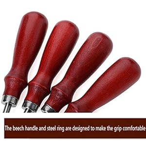 The Rongon 3 Pcs Leather Edge Bevelers set features quenched stainless steel blades in three precise bevel widths (1.0mm, 1.2mm, 1.5mm) designed for leather thicknesses from 1.6mm to 4mm. Each tool is equipped with an ergonomic solid wood handle for comfortable, controlled use. Lightweight and durable, this kit is perfect for both professional leather crafters and passionate amateurs seeking flawless edge finishing, skiving, and splicing.