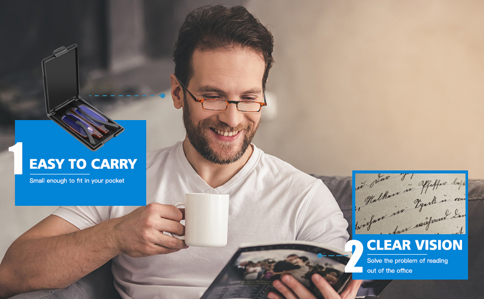 SZEOEOMUltra-Thin Foldable Reading Glasses Ultra-light Bule-light Folding Readers for Men Women Compact Travel Portable Rectangle Eyewear Case