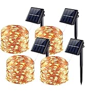This 4-pack solar fairy lights set features 100 warm white LEDs on 33ft copper wire with 8 lighting modes and an automatic dusk-to-dawn sensor. Powered by an upgraded solar panel with over 20% energy conversion efficiency, it delivers 8-14 hours of eco-friendly illumination. Rated IP45 waterproof, these durable lights withstand all weather conditions, making them perfect for decorating gardens, patios, trees, and special events with a sleek, invisible-wire aesthetic.