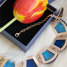 Statement Bib Necklaces for Women Trapezoid Block Charm Geometric Cut Turquoise Blue Tone Bib