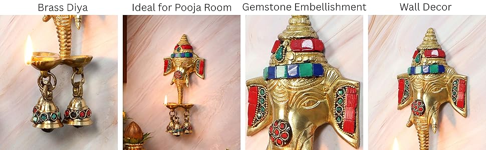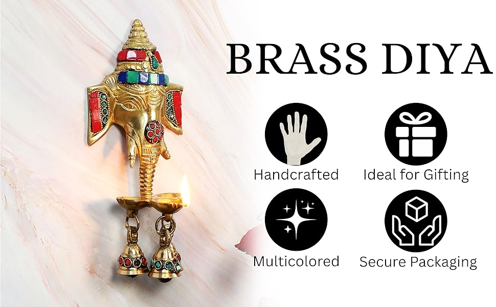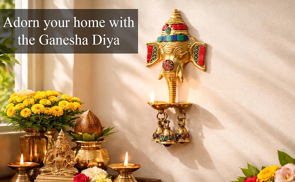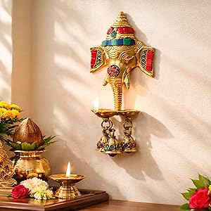 This Two Moustaches brass Ganesh wall hanging diya combines traditional craftsmanship with modern design, featuring a compact 9.5-inch size, integrated bells for a serene atmosphere, and eco-friendly vegetable oil fuel. Perfect for Diwali, pooja, or temple decor, it offers durable elegance and easy maintenance to enrich your spiritual rituals.