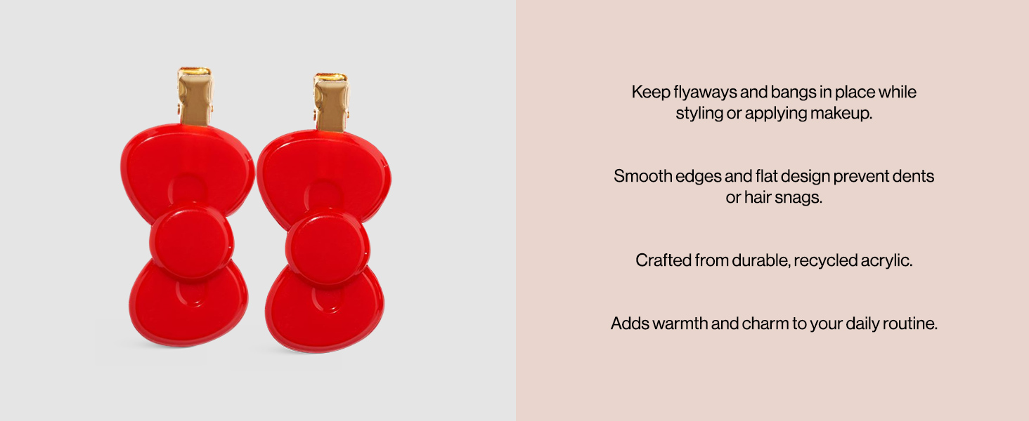 Hello Kitty x Kitsch Creaseless Hair Clips combine eco-friendly recycled plastic with a strong, crease-free hold designed for all hair types. Featuring professional-grade hinges and the signature red bow, these durable clips are perfect for styling, makeup routines, and gifting—offering millennial professionals a chic, practical accessory that keeps hair flawless without damage.