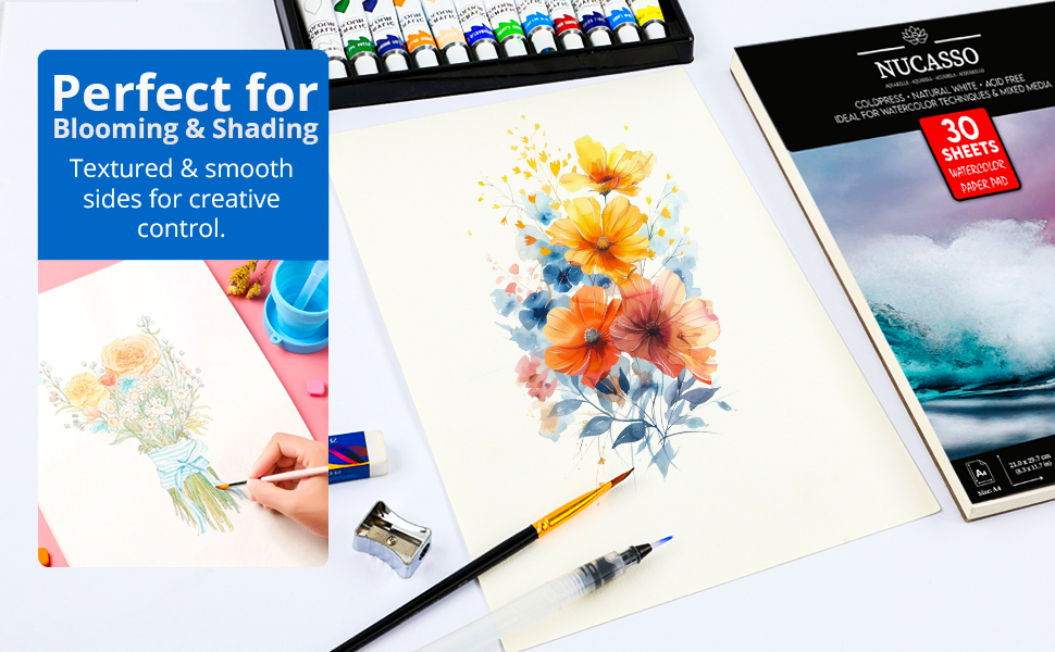 I used this NUCASSO watercolor paper for my kingfisher painting - not completed yet i might add, and I’m really impressed with the quality! The 300 GSM weight makes it sturdy enough to handle multiple layers of paint without buckling or warping. The natural white color really makes the colors pop, and the texture is just right for watercolors, smooth enough for detailed work but with enough tooth to hold the paint well.It’s great for students or anyone just starting out with watercolors, offering a professional feel at a student-friendly price. If you’re looking for a reliable watercolor paper for your next project, this pad is a solid choice!