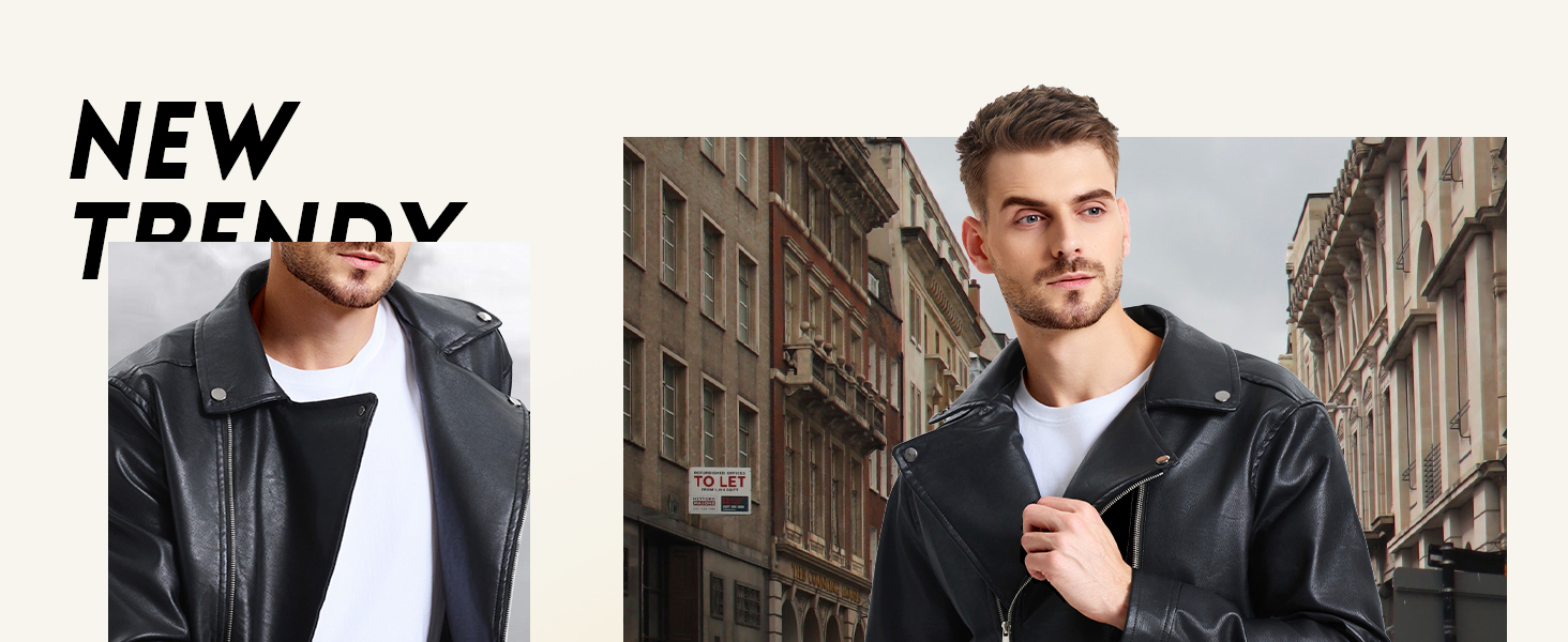 WULFUL Men's Leather Jackets, Faux Bomber Jacket for Men Motorcycle Lapel Asymmetric Zip-Up Slim Fit Biker Coat