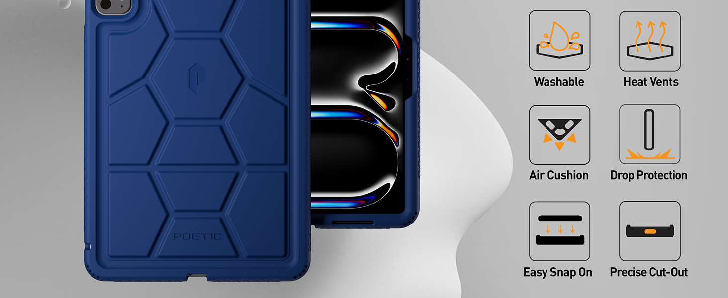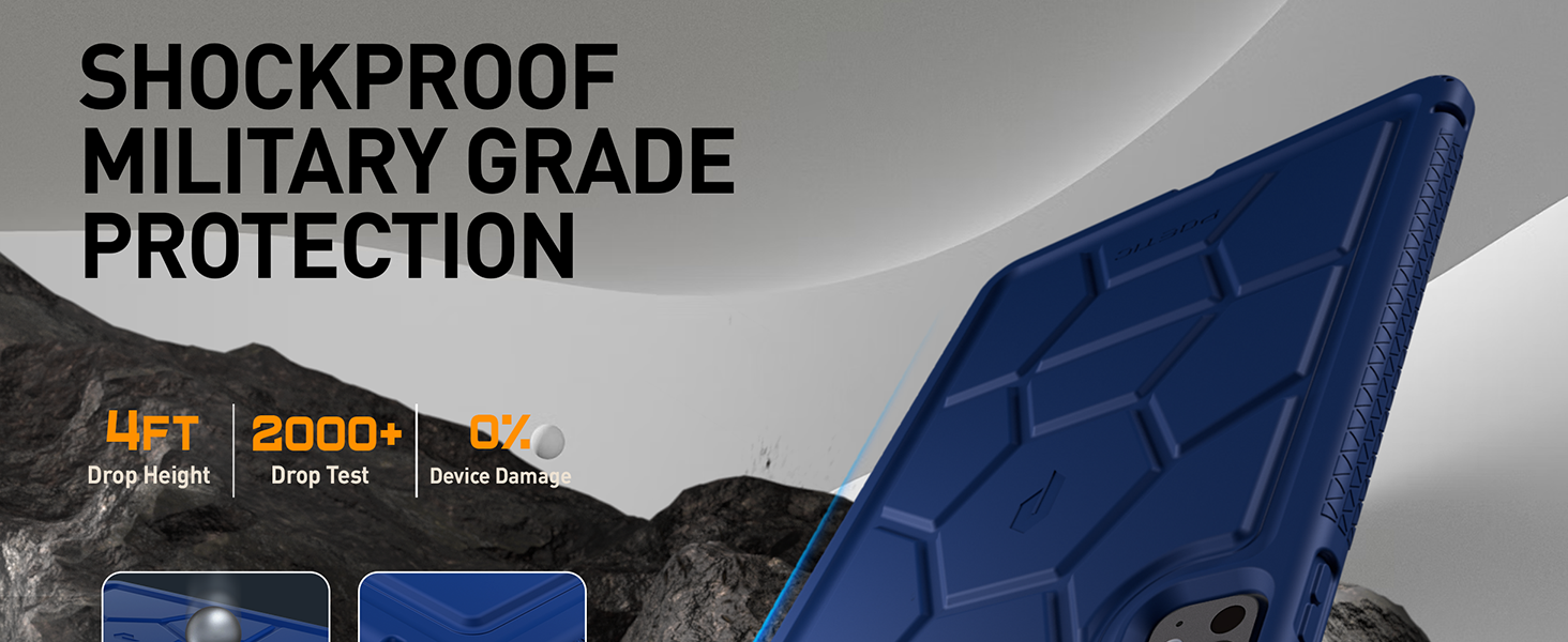 PoeticTurtleSkin Case for iPad Pro 11 Inch 2024 M4 5th Gen, Heavy Duty Shockproof Rugged Kids Friendly Drop Protection Silicone Cover Case, Navy Blue